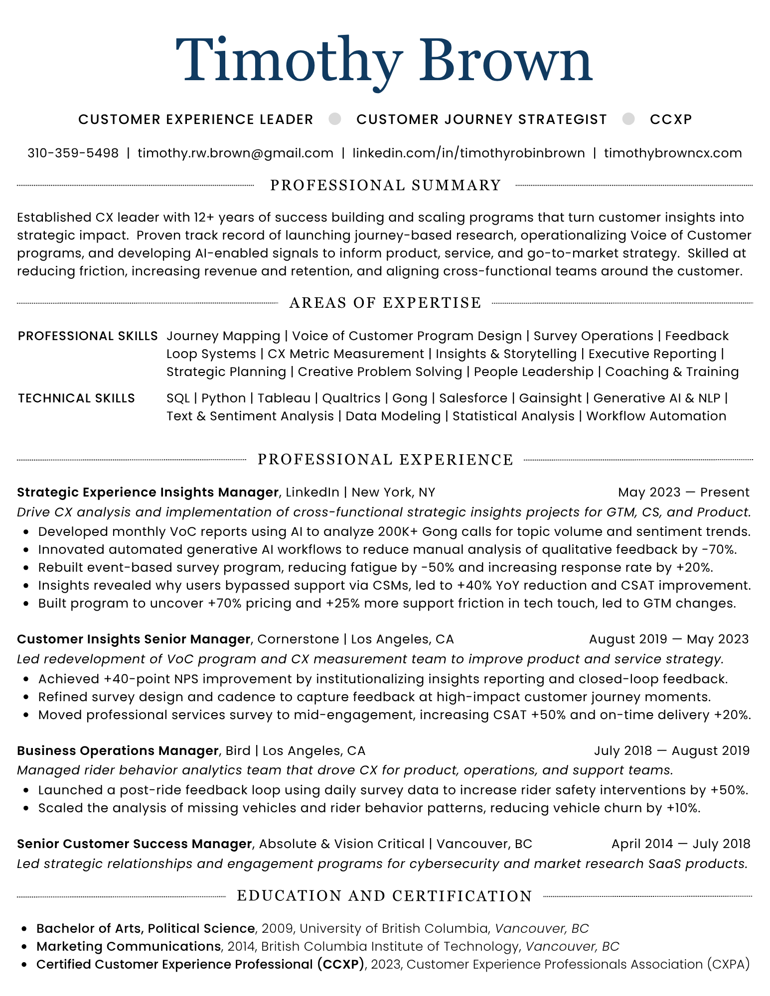 Timothy Brown, CCXP – Customer Experience Leader & Strategist